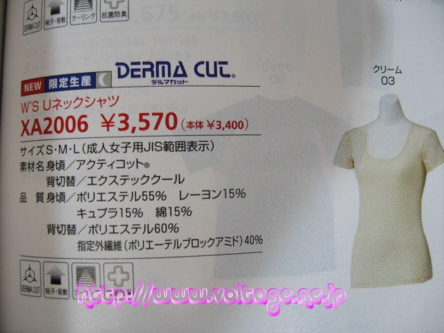 シックスUネックシャツ 製品型番:XA-2006 素材:ポリエステル55% 綿15% レーヨン15% キュブラ15% 定価(メーカー希望小売税込価格):3570円