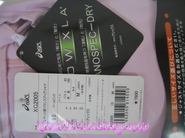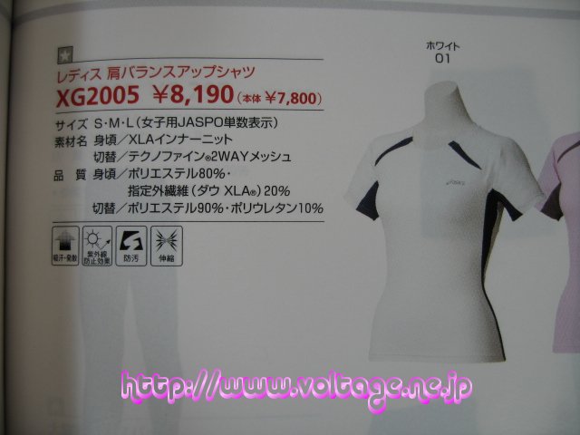 アシックスレディス肩バランスアップシャツ 製品型番:XG-2005 素材:ポリエステル80% 指定外繊維(ダウXLA)20% 定価(メーカー希望小売税込価格):8190円