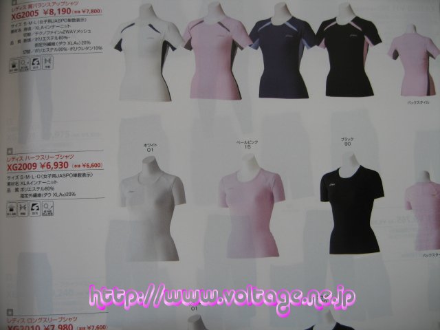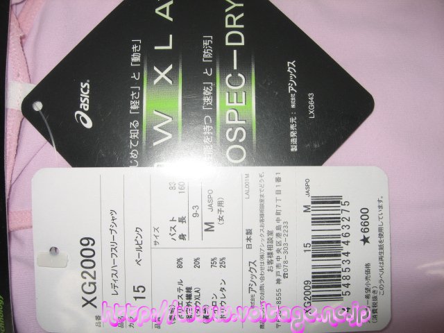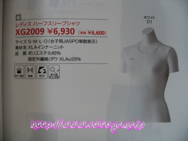 アシックスレディスハーフスリーブシャツ 製品型番:XG-2009 素材:ポリエステル80% 指定外繊維(ダウXLA)20% 定価(メーカー希望小売税込価格):6930円