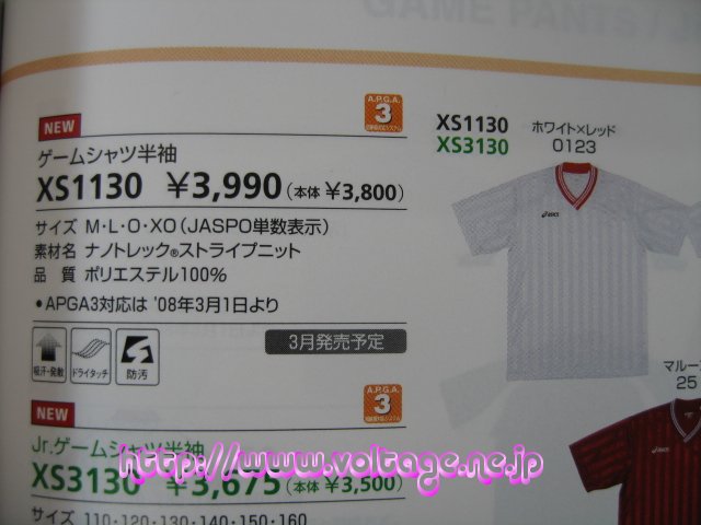 アシックス 半袖Vネックゲームシャツ 製品型番:XS-1130 素材:ナノトレックストライプニット-ポリエステル100% 定価(メーカー希望小売税込価格):3990円